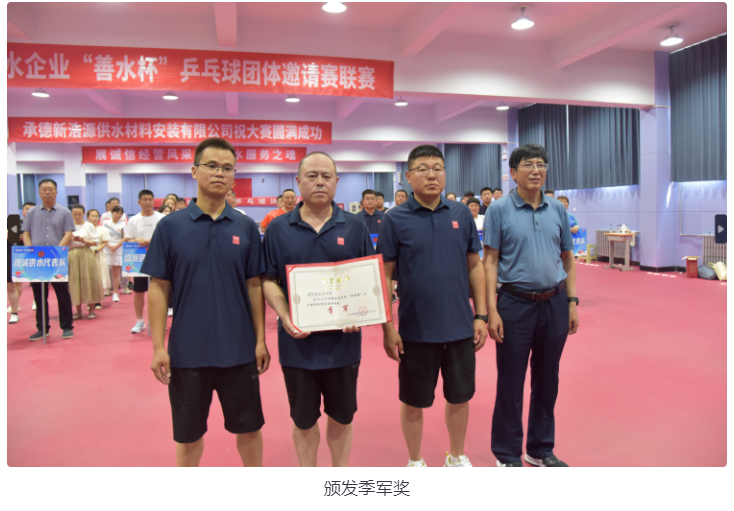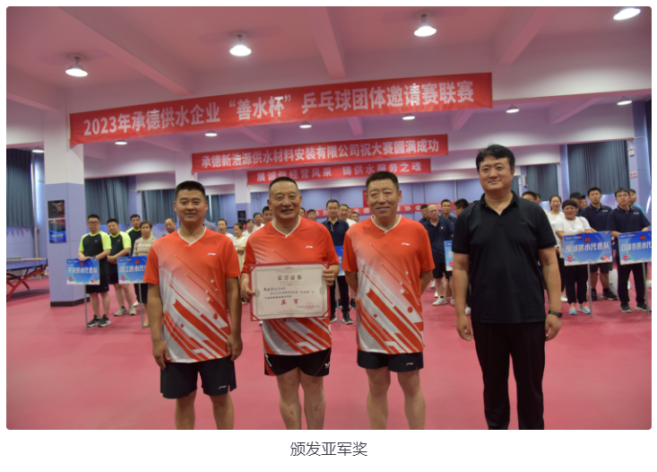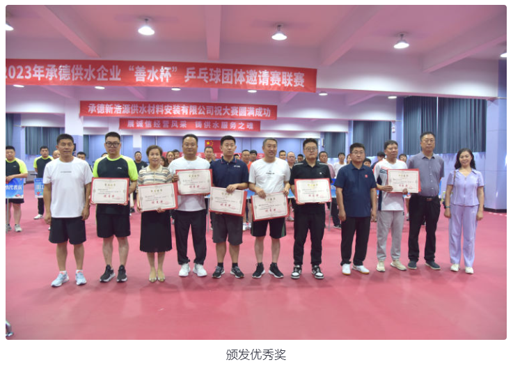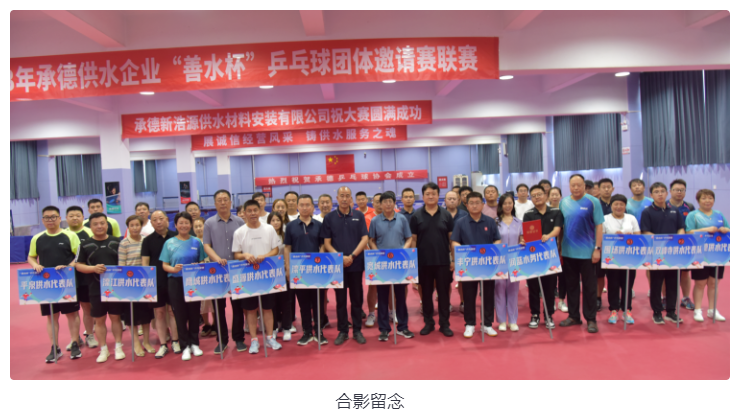 為進(jìn)一步豐富供水企業(yè)文化生活,營(yíng)造百花齊放的供水文化氛圍,加強(qiáng)職工間的相互交流,提高供水隊(duì)伍的競(jìng)技水平和綜合素質(zhì),展現(xiàn)員工蓬勃向上的精神風(fēng)貌,6月16日上午,由河北省城鎮(zhèn)供排水協(xié)會(huì)承德供水工作站(承德城鎮(zhèn)供排水協(xié)會(huì)承德供水委)主辦,承德市供水集團(tuán)有限公司承辦,各市、區(qū)、縣供水企業(yè)共同參與的2023年承德供水企業(yè)首屆“善水杯”乒乓球團(tuán)體邀請(qǐng)賽聯(lián)賽在承德市奧力體育場(chǎng)乒乓球館隆重舉辦。來(lái)自承德市、區(qū)、縣的供水企業(yè)11個(gè)代表隊(duì),共50多名運(yùn)動(dòng)員參賽。