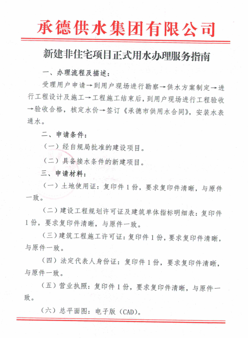 新建非住宅項目正式用水辦理服務(wù)指南